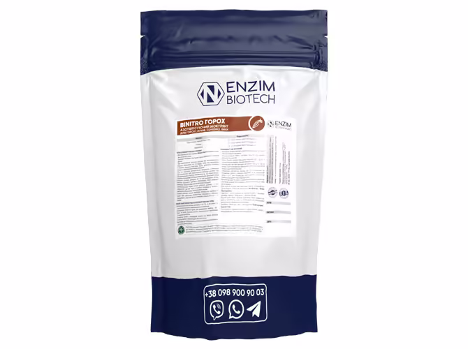 Азотфіксуючий інокулянт для гороху BiNitro© Горох - сухий препарат для передпосівної інокуляції насіння гороху, бобів, сочевиці, вики на основі культури бульбочкових бактерій Rhizobium leguminosarum штаму RL 45 з титром не менше 3х109 КУО/г, та продукти їх метаболізму (фітогормони, амінокислоти, вітаміни).